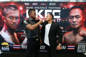 Muay Thai legendes Buakaw en Saenchai vochten in een blote vuist gevecht op zaterdag 4 november in PEACH in Pattaya, Thailand. De wedstrijd werd betwist onder speciale regels en was het hoofdevenement van BKFC Thailand . De geplande 158-pond (71,66 kg) wedstrijd van vijf ronden ging de volle afstand, met stoten, trappen, knieën en ellebogen. De scorekaarten van de jury waren 49-46, 50-46 en 48-47, allemaal in het voordeel van “The White Lotus”