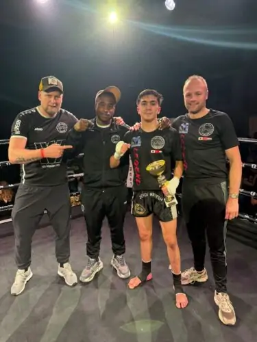 In the second round, Mohammed’s dominance reached a climax. His opponent was completely gripped, powerless against the young kickboxer’s onslaught. With a series of precise and powerful punches, Mohammed finally managed to work his opponent completely to the canvas. It was a merciless demonstration of power and technique. The match ended in a convincing K.O., with the opponent’s trainer having no choice but to throw in the towel. This happened after Mohammed El Haji needed just 1 minute and 10 seconds of the second round to secure victory. The decision was unanimous and the message crystal clear: Mohammed El Haji is the clear winner, a rising star in the world of kickboxing who will undoubtedly make a lot of noise. His debut was a harbinger of a promising career, marked by his tireless fighting spirit and his unstoppable drive for success.