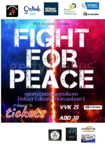 Wij nodigen u van harte uit om deel te nemen aan “FIGHT FOR PEACE” en samen met ons een onvergetelijke dag te creëren die de kracht, discipline en vrede van vechtsporten viert. Mis deze unieke kans niet en schrijf uw vechters nu in! Wij kijken ernaar uit u te verwelkomen in Oostende.