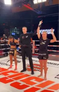 De wedstrijd duurde niet lang nadat Lisa haar tegenstander met een precieze knie wist te raken. Haar rivaal was niet in staat om zich te herstellen van deze krachtige klap, met als uiteindelijk resultaat: Winnaar KO in de eerste ronde