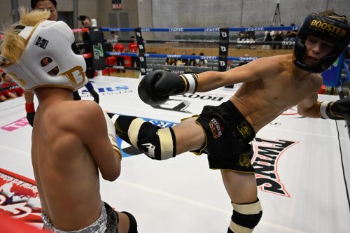 Branco Verheye was de eerste van het team die de ring betrad. Hij vocht twee ronden van twee minuten tegen een zeer gedreven tegenstander. Ondanks de spanning en druk van zo’n groot podium wist Branco zijn hoofd koel te houden. Hij liet mooie combinaties en een goede houding zien, maar kwam uiteindelijk net tekort. De jury kende de overwinning toe aan zijn tegenstander op punten. Een nipte nederlaag, maar een sterke prestatie van een jonge vechter die duidelijk potentie heeft.
