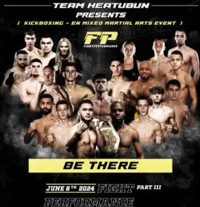 Levi Minkenberg zal helaas niet kunnen deelnemen aan de Fight Performance op 8 juni vanwege een gebroken hand die hij heeft opgelopen tijdens het trainen. Hij is erg teleurgesteld dat hij de hoofdpartij niet kan vervullen, maar belooft sterk terug te komen zodra hij is hersteld. Ondanks Levi’s afwezigheid, belooft dit evenement nog steeds een spectaculaire avond te worden. Er zullen zes profpartijen en twee semi-profpartijen plaatsvinden, evenals partijen van talentvolle amateurs en jeugdige vechters. De ongeslagen Max Weekers, uitkomend voor Team Heatubun, zal de hoofdpartij overnemen tegen de meervoudig kampioen Aristote Quitusisa uit Frankrijk. Daarnaast is er een toppartij tussen de ervaren vechters Mike Frenken en Bilal Loukili, die beiden al grote namen hebben verslagen. Fight Performance nodigt iedereen uit om getuige te zijn van dit grootste evenement in Nederland Limburg, dat ongetwijfeld een onvergetelijke dag zal worden.