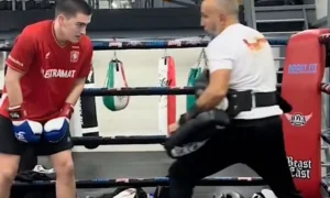 Marciano Aerts, the son of K1 legend Peter Aerts, is making significant progress as a kickboxer. Not only does he bear a striking resemblance to his towering father, but he also demolishes opponents in the ring with the same aggression. However, even Marciano cannot escape the need to be cautious during training, as demonstrated by this occurrence.