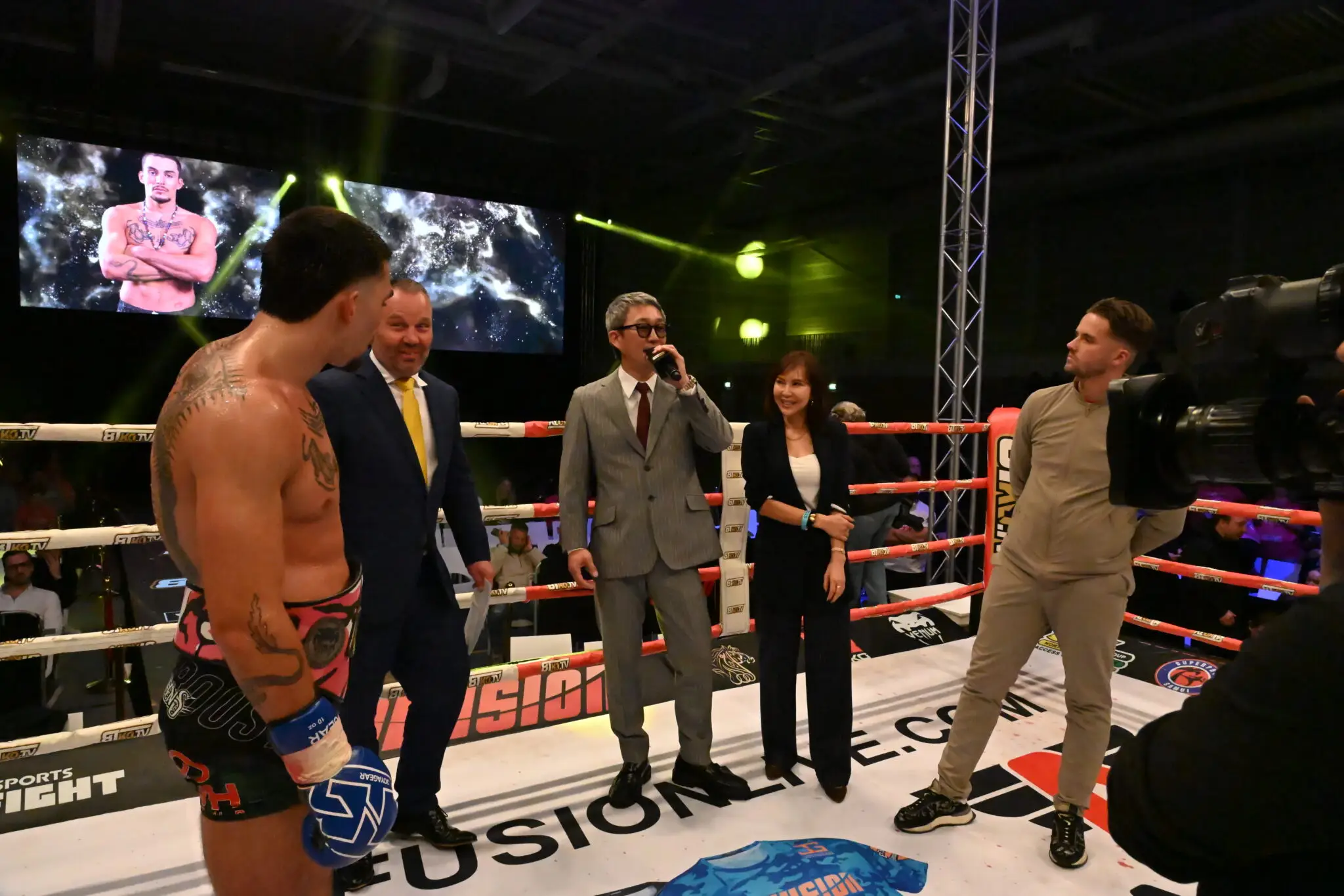 His presence was specifically aimed at attending the Enfusion event. Fucuyama showed great interest in the diverse, talented fighters that were on the card and was especially curious about the main match of the evening: the showdown between Thian De Vries and Max Weekers. This bout promised to be a spectacle and provided an excellent opportunity to judge the level of Enfusion fighters up close.