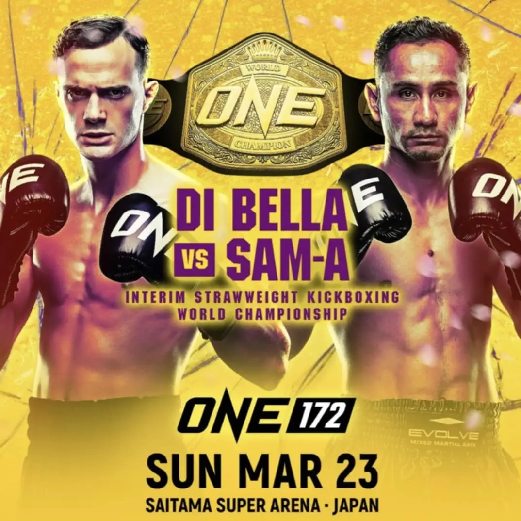 In het bruisende Tokio, Japan, vond een adembenemend gevecht plaats binnen de ONE CHAMPIONSHIP ring. De jonge en ambitieuze Jonathan Di Bella, een 28-jarige voormalig wereldkampioen kickboksen met roots in Canada en Italië, stond tegenover de legendarische Sam-A, een 41-jarige voormalig wereldkampioen Muay Thai uit Thailand. De spanning was voelbaar terwijl de twee vechters zich opmaakten voor een epische confrontatie van vijf rondes van elk drie minuten.