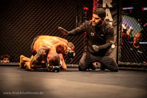 Voor de grote mannen het podium betreden, staan er nog twee jeugd MMA-partijen gepland. Hier zien we jonge talenten die moeiteloos schakelen tussen staand vechten en grondwerk.