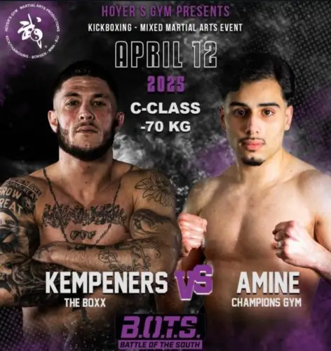 Make a note of the date: April 12, 2025. On this day, Sacha Kempeners will enter the ring in a titanic battle against Amine. The tension is palpable and expectations are high. It promises to be a spectacular showdown, a clash between two top athletes who are both determined to win. Kemperners VS Amine – a fight that will go into the books as a true showdown.