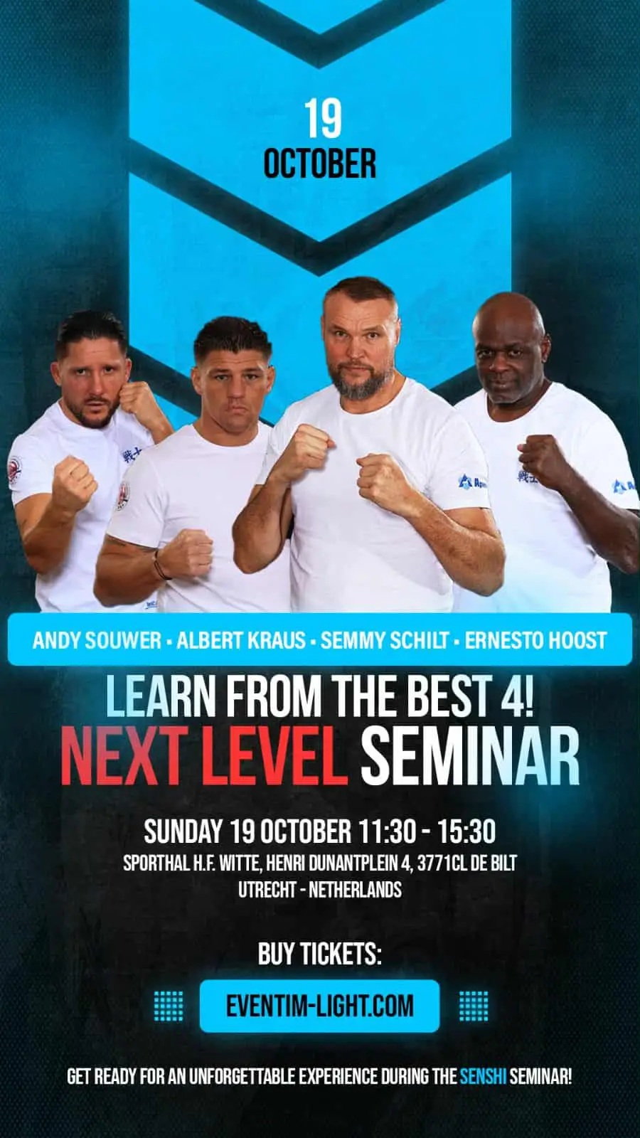 De inschrijvingen stromen al binnen, maar er zijn nog plaatsen beschikbaar. Ben jij een kickbokser in hart en nieren en wil je de kans grijpen om je technieken te verbeteren en te leren van de allerbesten? Aarzel dan niet en schrijf je snel in via de volgende link: https://www.eventim-light.com/nl/a/677d935805d85d036879f5bf/e/6859b124d0a23b5149f27af9?lang=en&fbclid=PAQ0xDSwMqI_FleHRuA2FlbQIxMAABp5fSZEE9-yY1OjgKBzQeXFvOMY0s2OqS1KmzbHbeLKTBE58T4ljs1_nyjd2i_aem_Ji3xx64lfvR_uyaMlJVQiQ