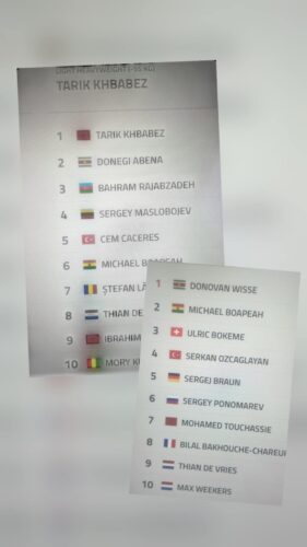 Michael Boapeah en Thian de Vries staan in beide lijsten, wat betekent dat ze ook buiten hun gewichtsklasse opvallen.