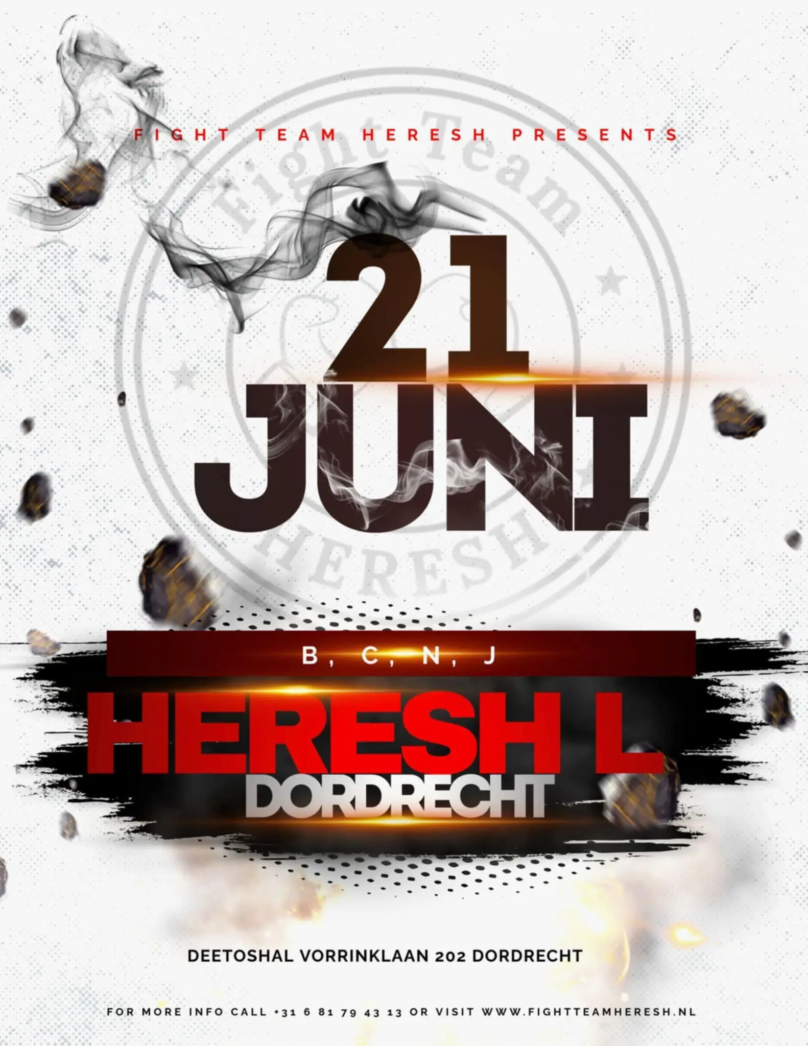 Fighters interested in participating in Heresh L Dordrecht can register via the following e-mail address: Matchmaking_fightteamheresh@hotmail.com.