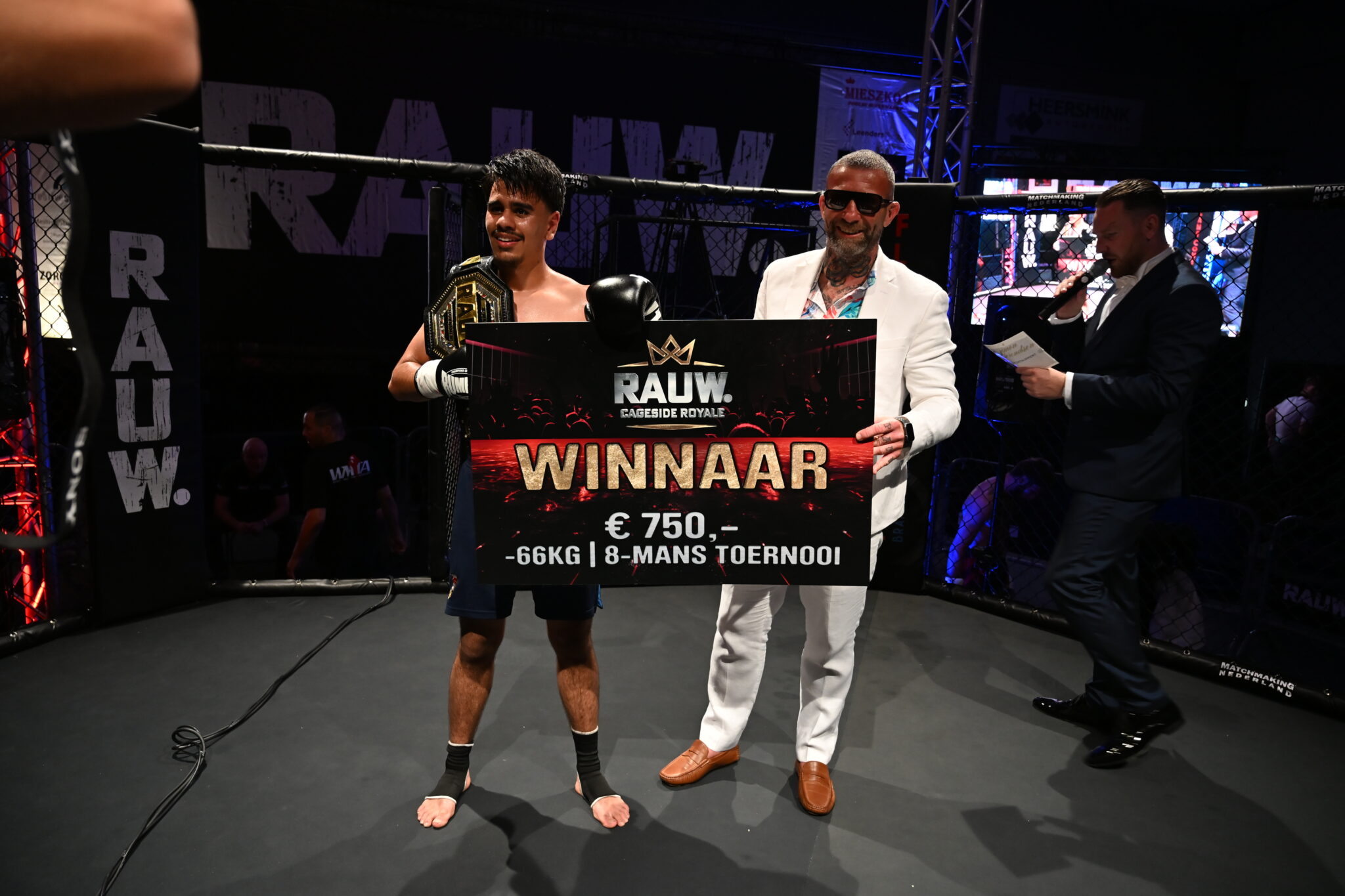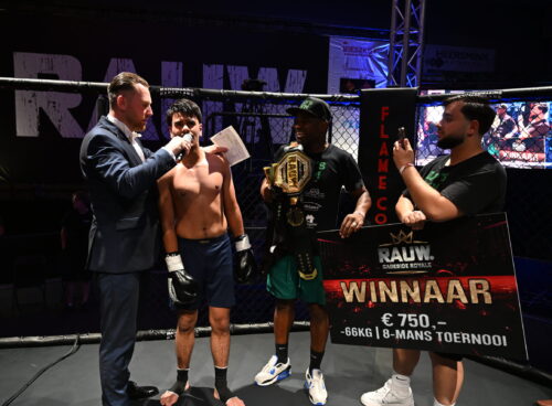 After a series of intense quarter-finals, semi-finals and a blood-curdling final, Salim Nabibaks and Walid Israpilov finally faced each other in the ring. Both fighters gave everything they had in a spectacular fight. In the end it was Salim Nabibaks who was victorious and received the coveted champion’s belt and the prize of 750 euros. The prize was handed to him by DENNIS KORNMAN , a well-known name in the martial arts world.